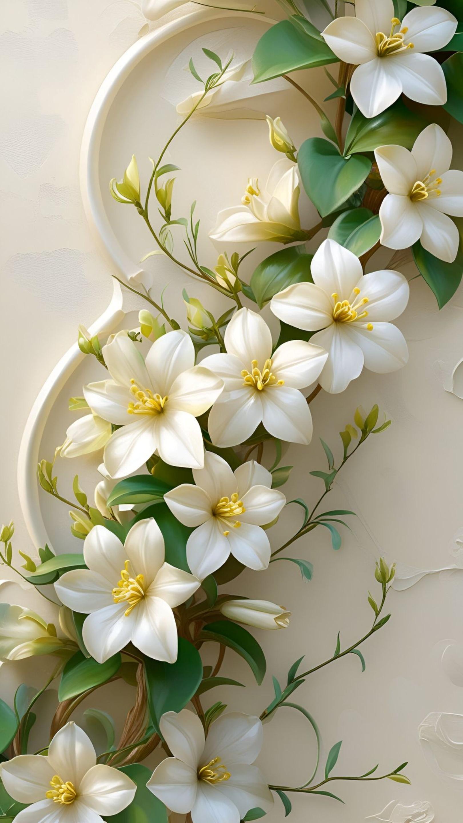 Jasmine flowers border wallpaper features delicate white blooms arranged in a graceful pattern along the edges.